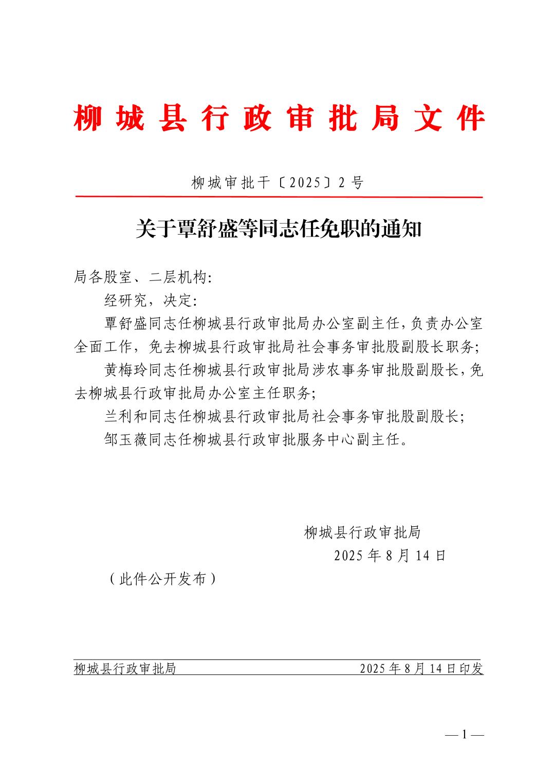柳城審批干〔2025〕2號(hào)關(guān)于覃舒盛等同志任免職的通知