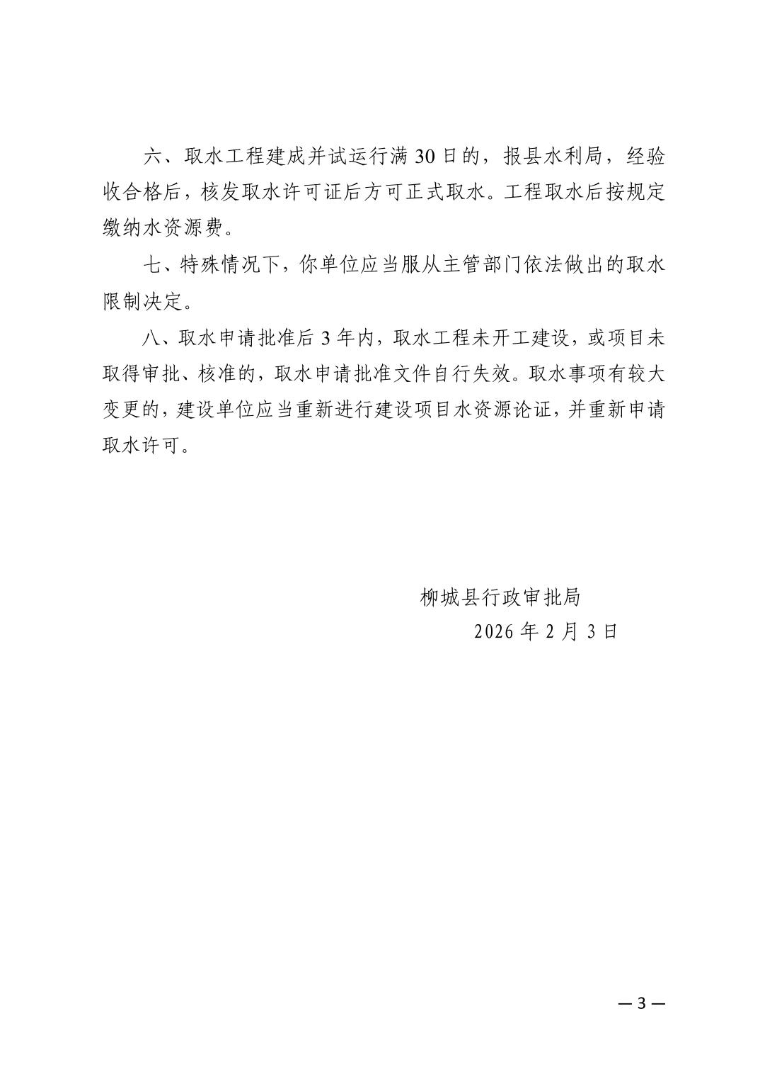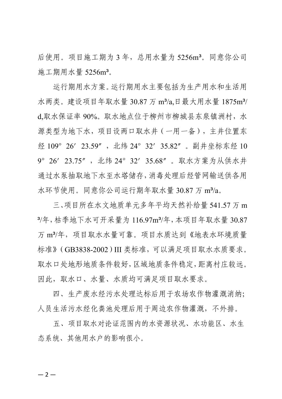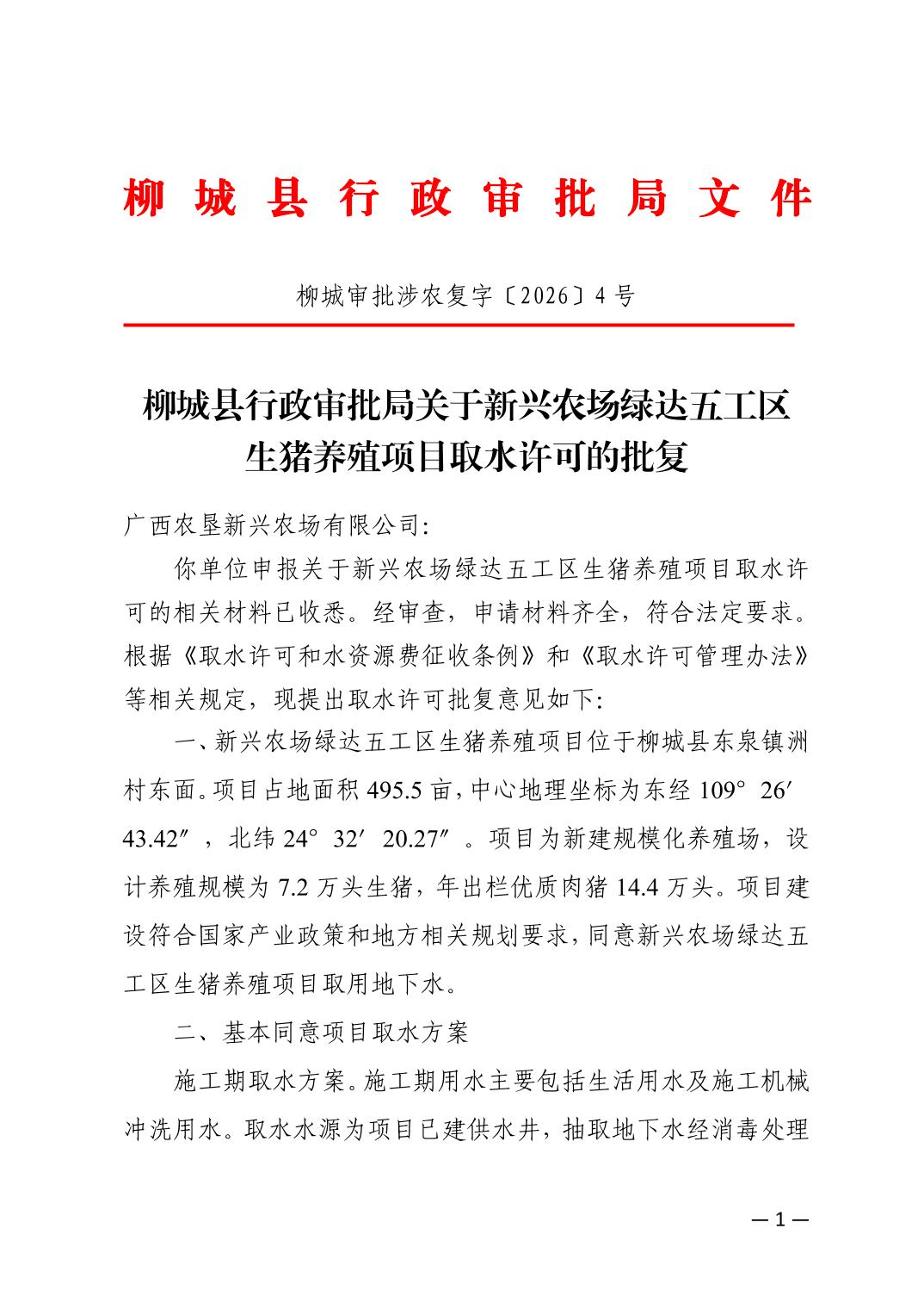 柳城縣行政審批局關(guān)于新興農(nóng)場(chǎng)綠達(dá)五工區(qū)生豬養(yǎng)殖項(xiàng)目取水許可的批復(fù)