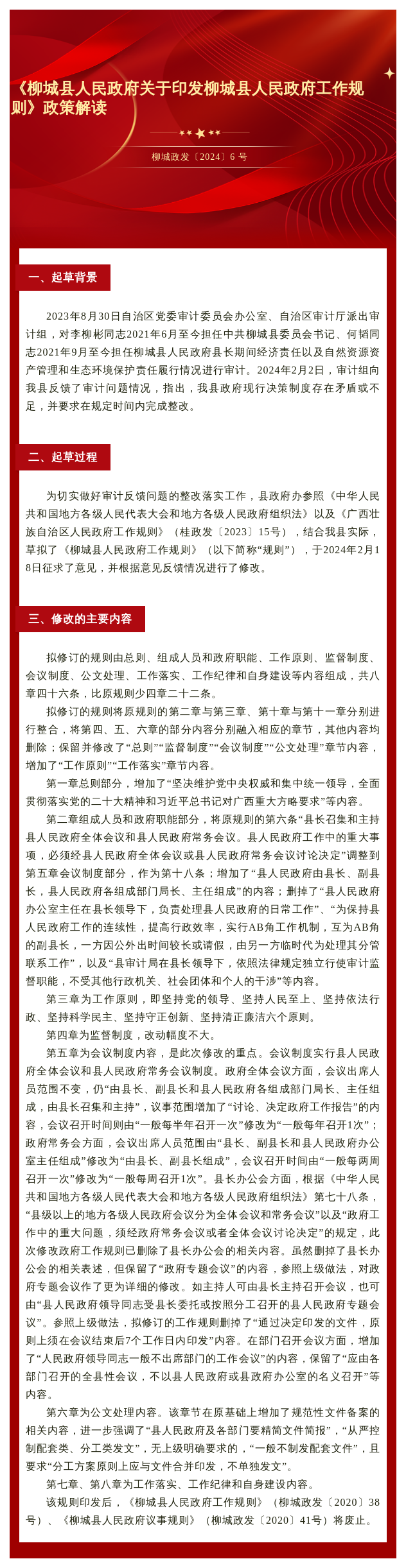 柳城政發(fā)〔2024〕6 號 《柳城縣人民政府關于印發(fā)柳城縣人民政府工作規(guī)則》政策解讀