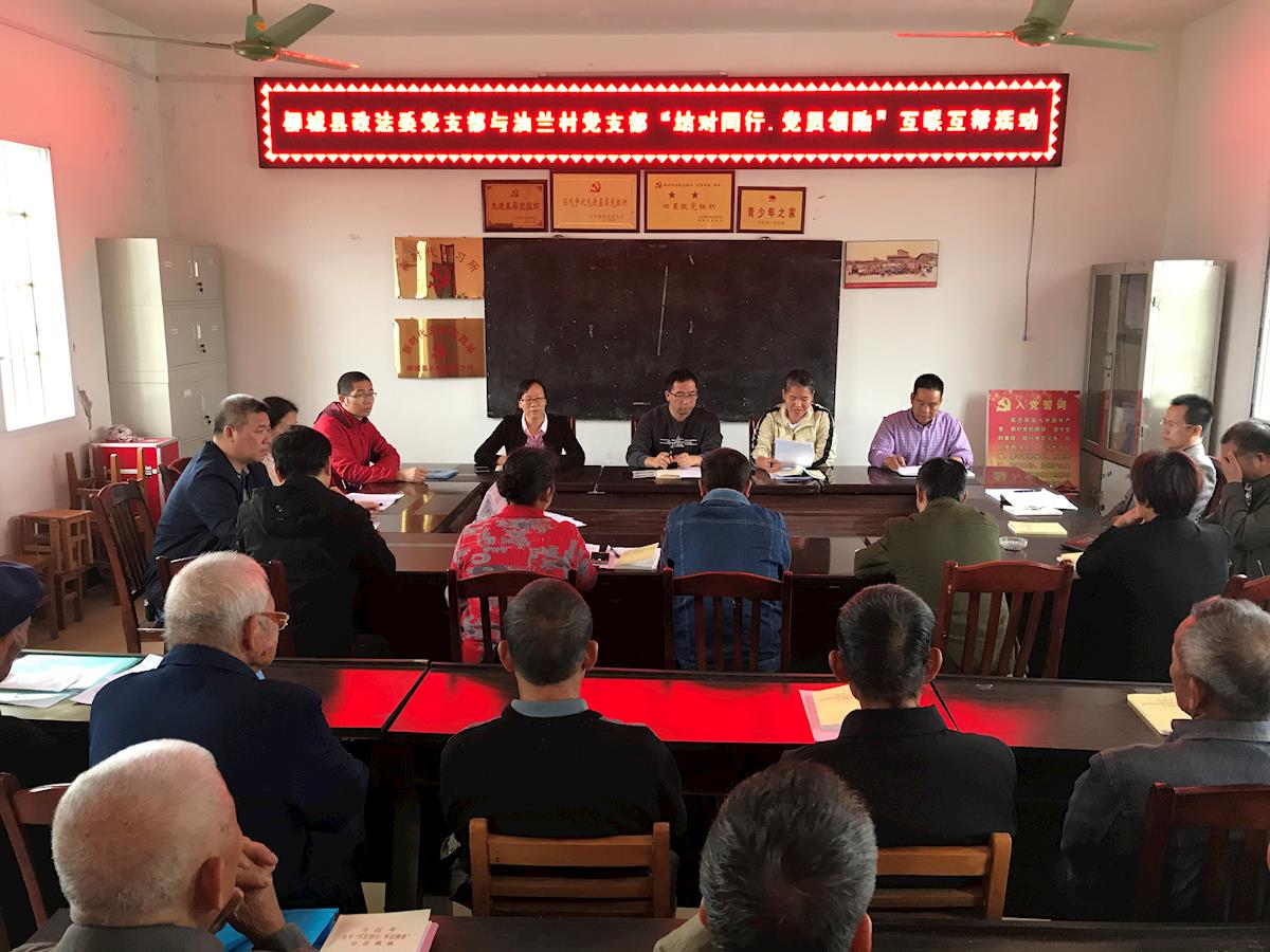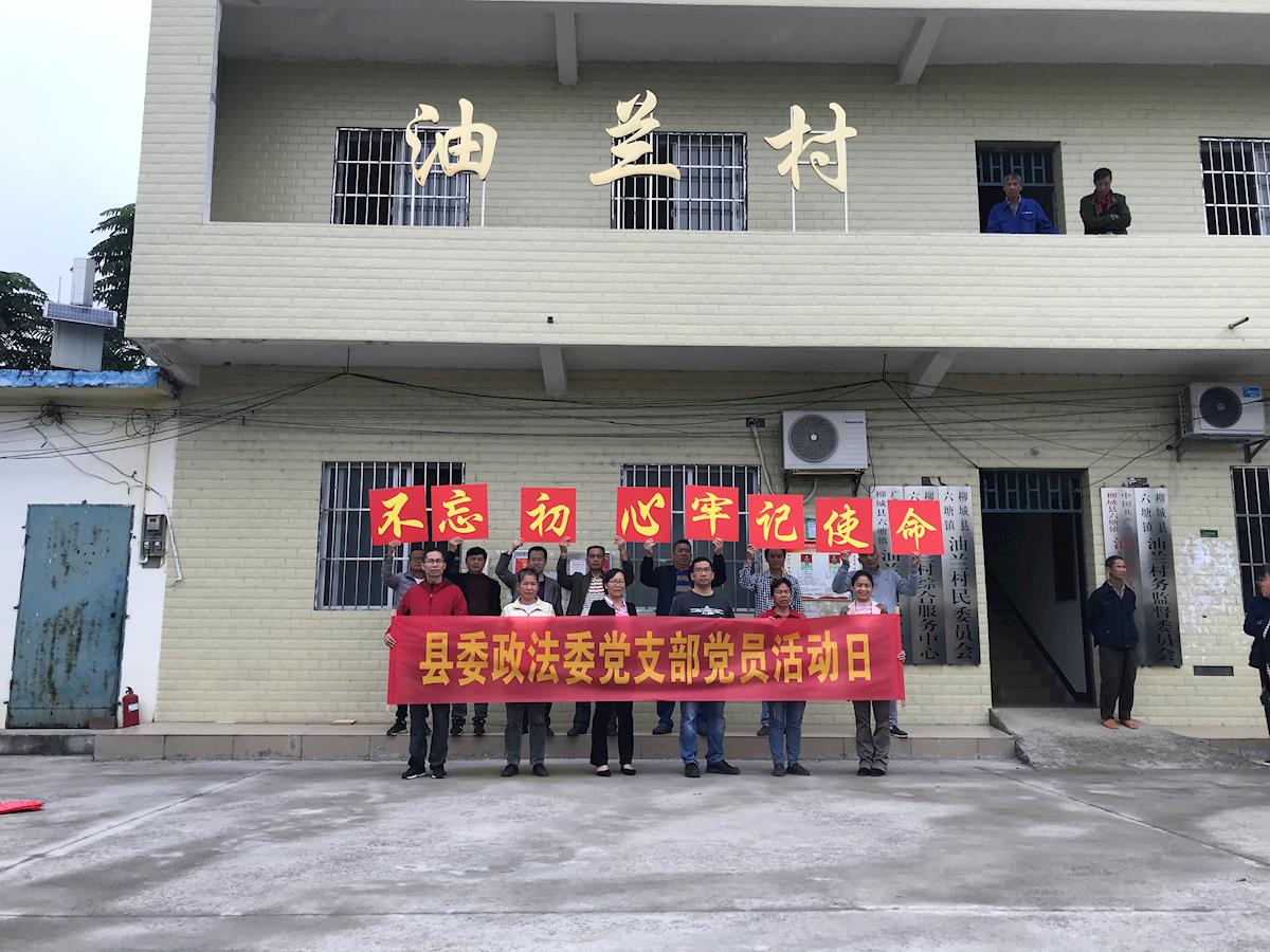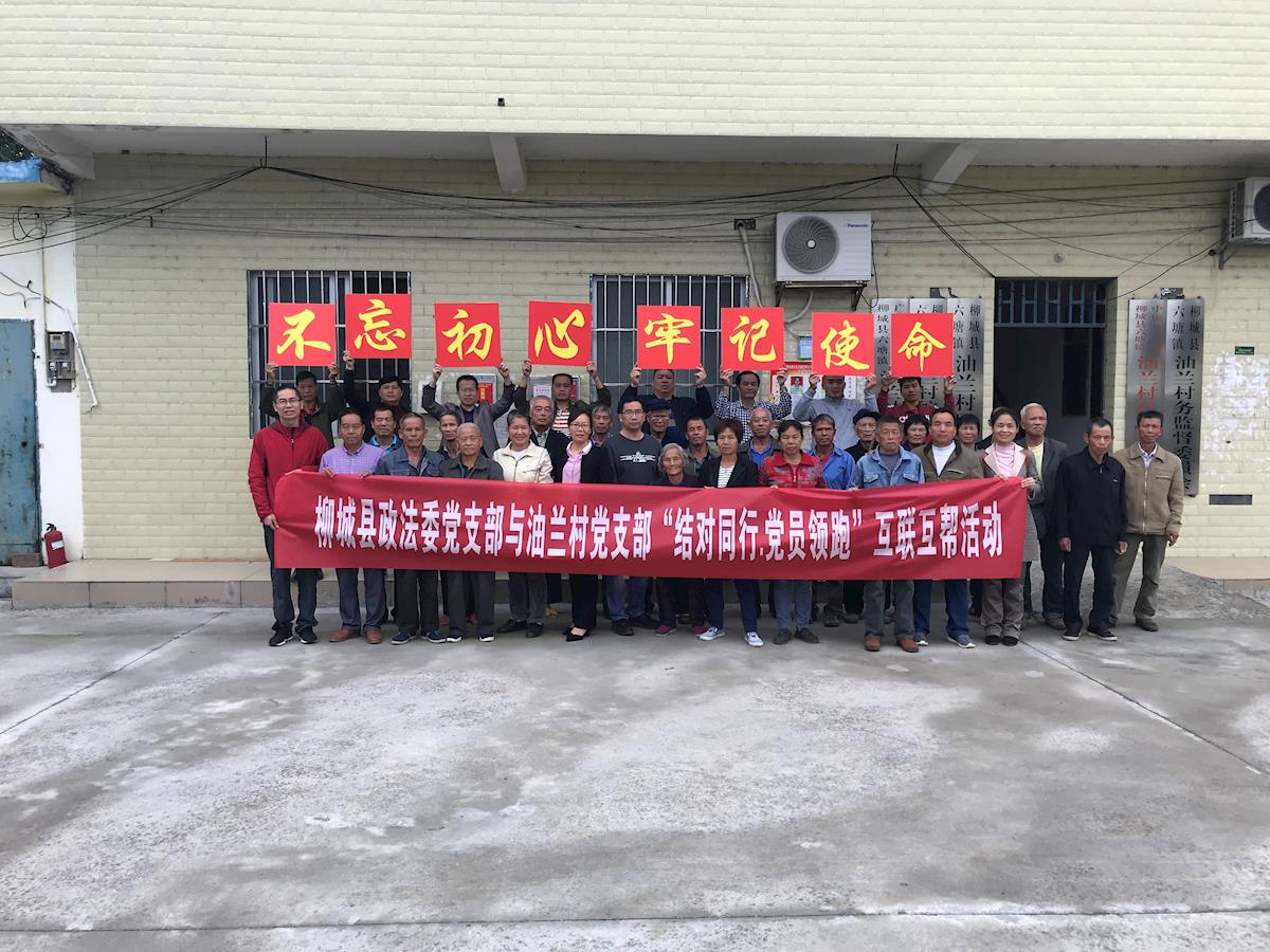 ??? ?2019年11月13日上午,柳城縣委政法委黨支部黨員一行10人在縣委政法委副書記覃建恒、全海春的帶領(lǐng)下,結(jié)合黨員活動(dòng)日深入六塘鎮(zhèn)油蘭村開展“不忘初心、牢記使命”主題教育,與村黨支部26名黨員開展“結(jié)對(duì)同行.黨員領(lǐng)跑”互聯(lián)互幫活動(dòng)。