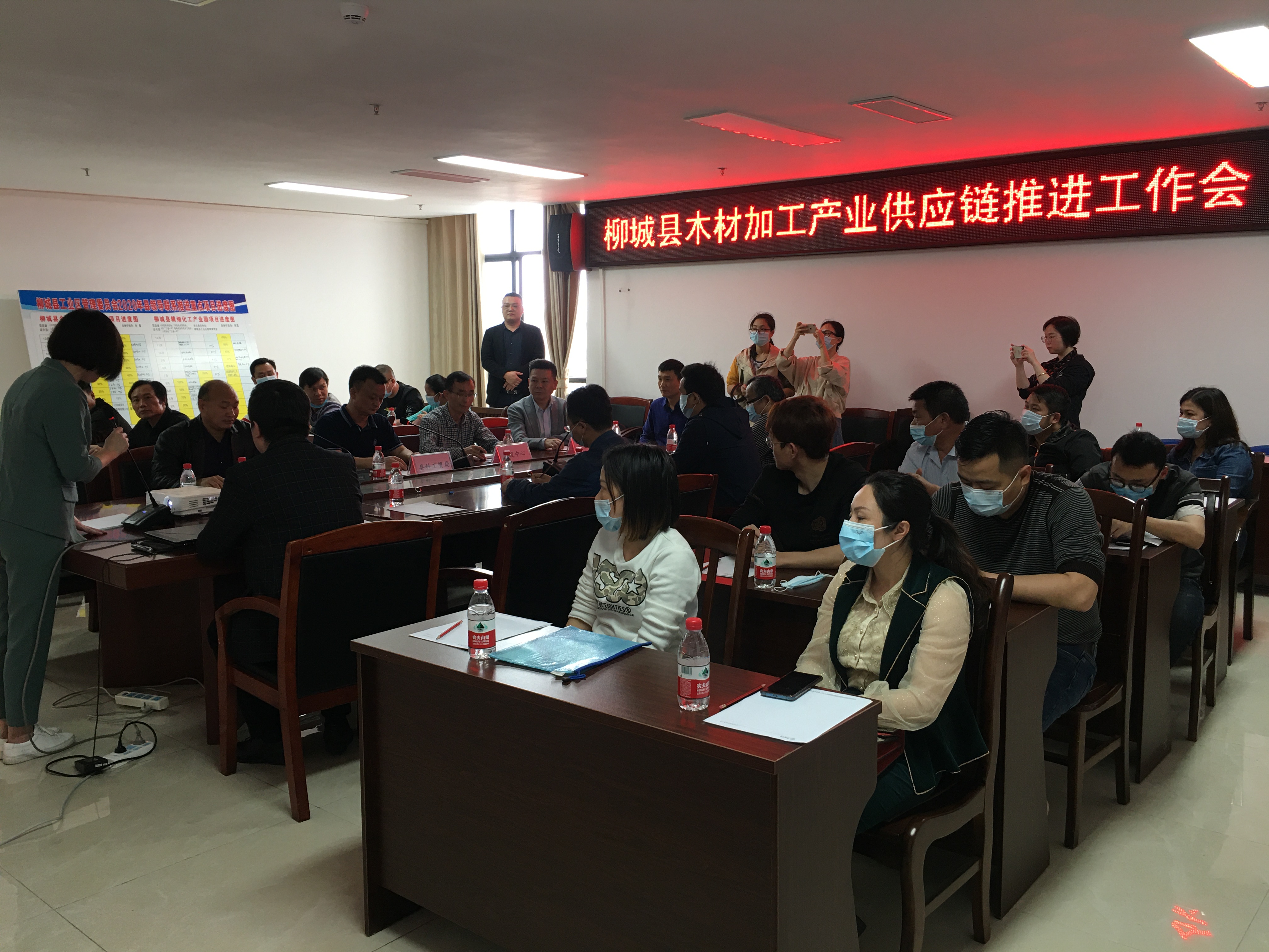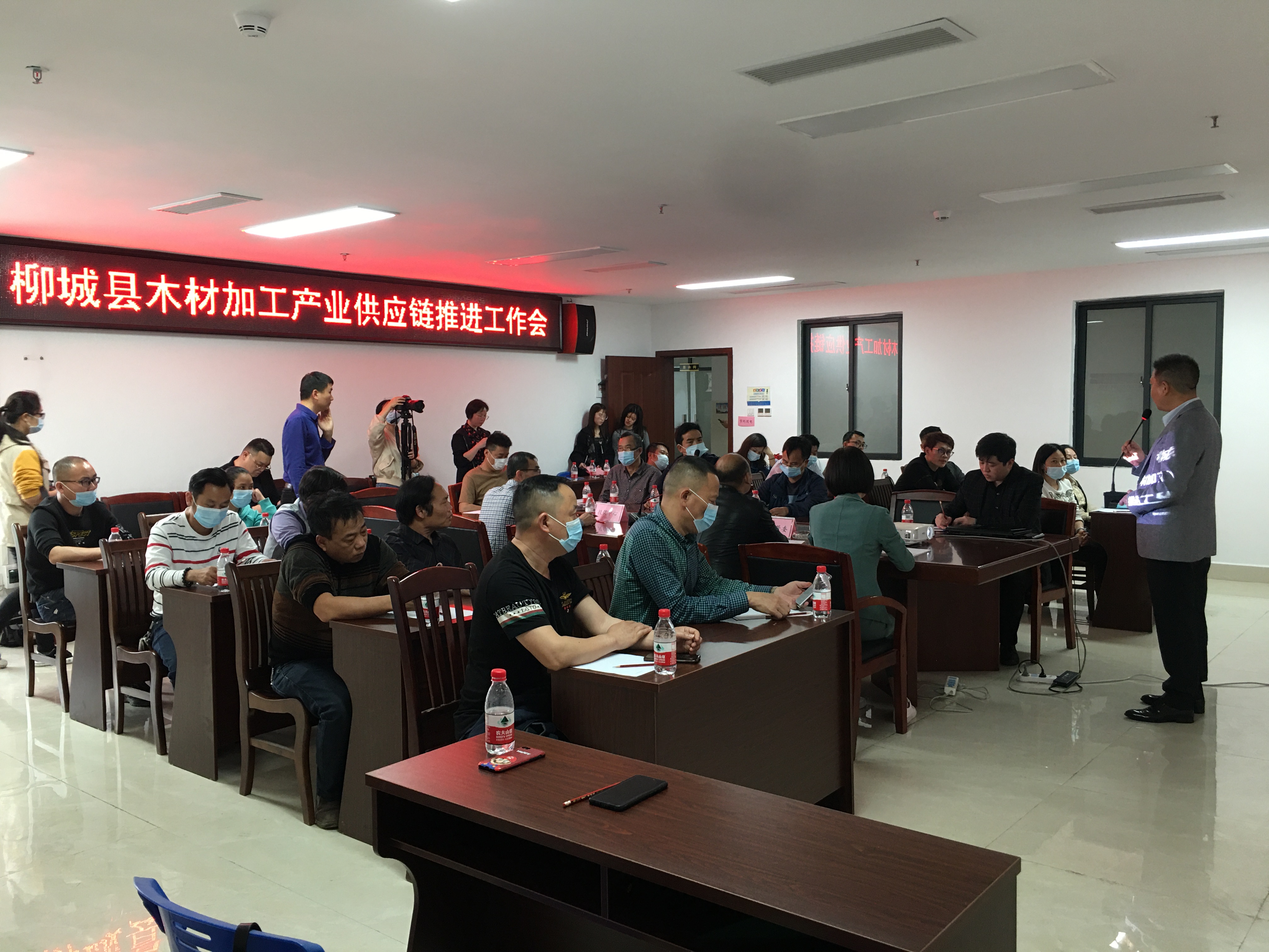 2021年3月18日下午,受柳城縣人民政府邀請,在柳城縣科技工貿(mào)和信息化局、工業(yè)區(qū)管理委員會、投資促進中心的組織下,在柳城縣城東大廈4樓會議室舉辦了“柳城縣木材加工產(chǎn)業(yè)供應(yīng)鏈推進工作會”。柳城縣科技工貿(mào)和信息化局局長黃小龍、柳城縣工業(yè)區(qū)管委會主任湯東滾、柳城縣投資促進中心副主任韋均喜、桂林愛家一購科技股份有限公司董事長文良天、柳城縣24家板材生產(chǎn)企業(yè)代表到場參會。
