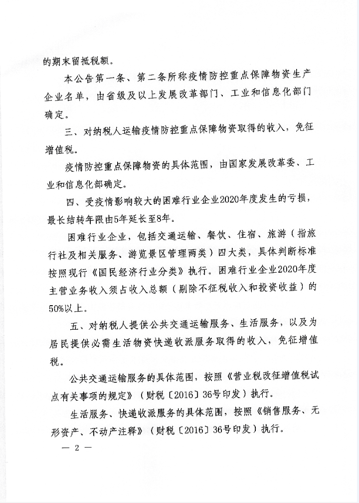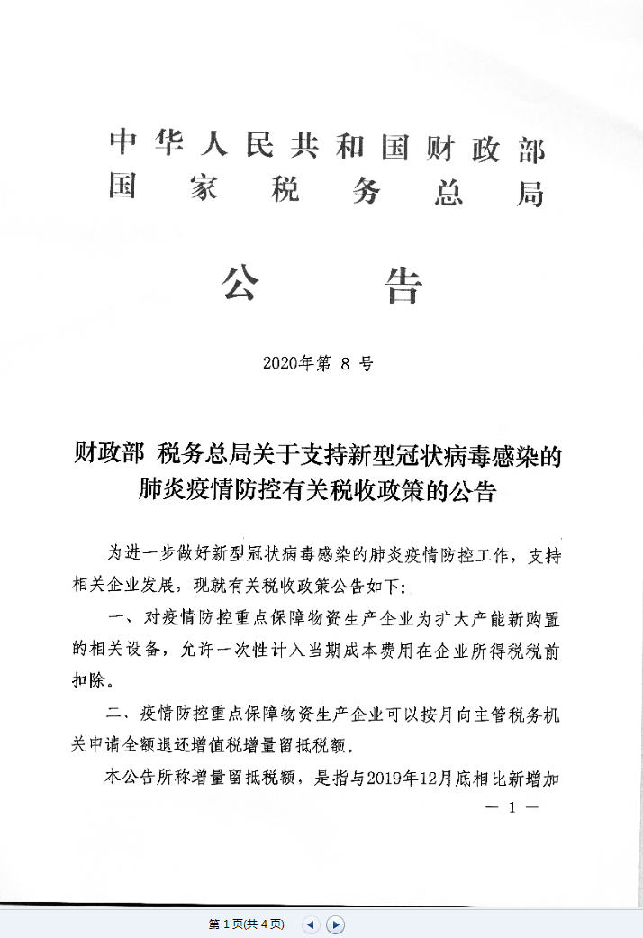 財(cái)政部 稅務(wù)總局關(guān)于支持新型冠狀病毒感染的肺炎疫情防控有關(guān)稅收政策的公告