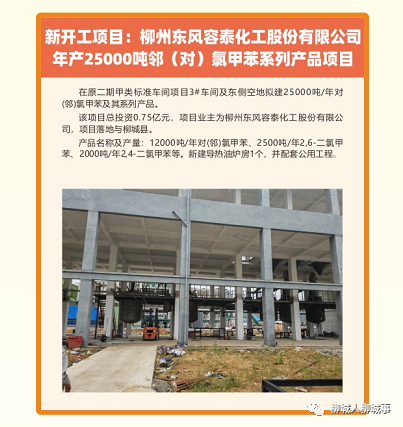 開工項目24項,總投資64.21億元,主要包括柳州市國際生物健康科技產(chǎn)業(yè)園廠房建設(shè)項目、柳州市立華牧業(yè)有限公司優(yōu)質(zhì)肉雞養(yǎng)殖基地、柳州東風(fēng)容泰化工股份有限公司二期甲類標(biāo)準(zhǔn)車間項目等。