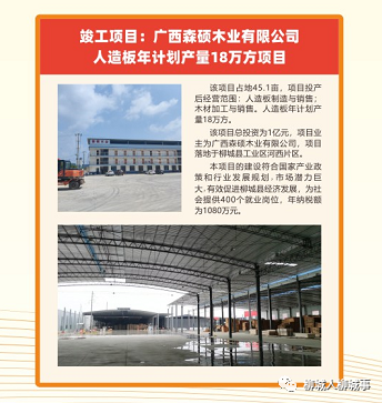 竣工項目22項,總投資18.94億元,主要包括深廣節(jié)能科技公司建筑門窗、防火玻璃項目、森碩木業(yè)公司人造板項目、展興建材科技公司鋼結(jié)構(gòu)項目等。