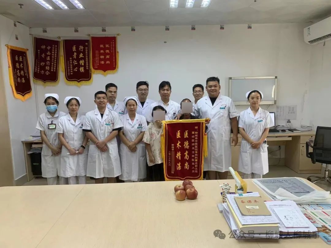 工作中,有位老年患者讓韋龍香記憶猶新。一位因骨折入院的大爺,因家庭經(jīng)濟(jì)困難延誤了治療,最后在老伴的陪伴下來到醫(yī)院。提及治療費(fèi)用時(shí),老兩口滿臉愁容,甚至想放棄治療回家休養(yǎng)。韋龍香看在眼里,急在心里,考慮到患者特殊的家庭情況,她帶頭成立科室愛心小組,發(fā)動(dòng)大家捐款千余元,幫助大爺解決了燃眉之急。在科室醫(yī)護(hù)人員的悉心照料下,大爺順利完成手術(shù)并康復(fù)出院。出院時(shí),家屬特意送來錦旗致謝,大爺恢復(fù)靈活雙手后展露的笑顏,以及緊緊握住她手時(shí)那句真摯的“謝謝”,都讓韋龍香倍感溫暖與自豪。