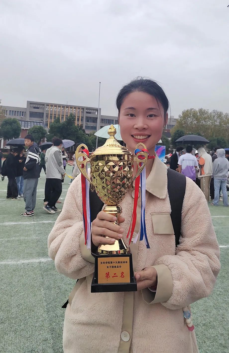 在部隊(duì)養(yǎng)成的團(tuán)隊(duì)協(xié)作意識(shí),也在她的校園生活中發(fā)揮得淋漓盡致。在組織第一次班級(jí)團(tuán)建中充分調(diào)動(dòng)起所有班委的積極性,齊心協(xié)力成功舉辦了團(tuán)建活動(dòng),讓班級(jí)充滿了團(tuán)結(jié)進(jìn)取的氛圍。在文華學(xué)院第十九屆運(yùn)動(dòng)會(huì)上,她一個(gè)人就參加了100米、400米、800米、4×100米、3000米五項(xiàng)賽事,在全班同學(xué)的共同努力下,班級(jí)最終斬獲女子團(tuán)體總分第二名的好成績。