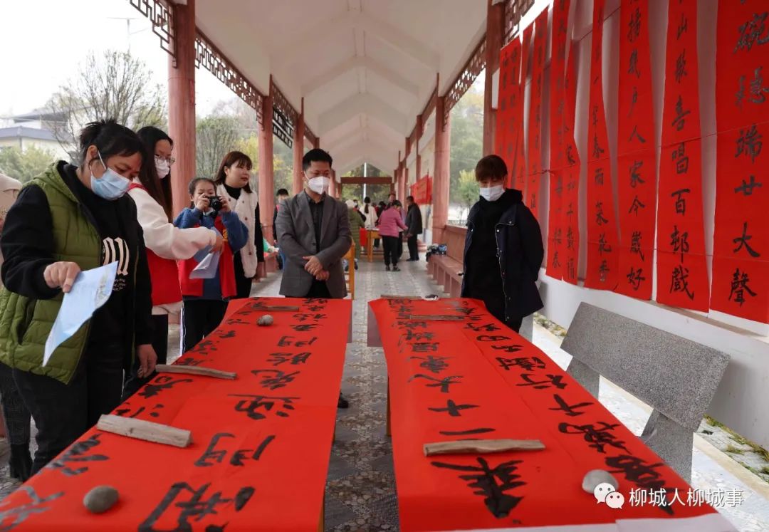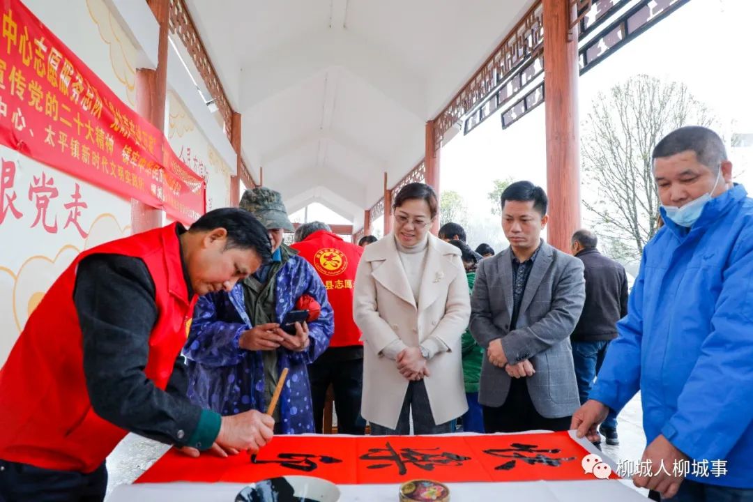 在太平鎮(zhèn)龍興村古么屯廣場,書法家們長桌排開,筆墨鋪就,多種書體各顯神韻,一副副春聯(lián),一個個福字,散發(fā)著濃濃的年味,飽含著關懷,展現(xiàn)了喜迎兔年、辭舊迎新的美好愿景。
