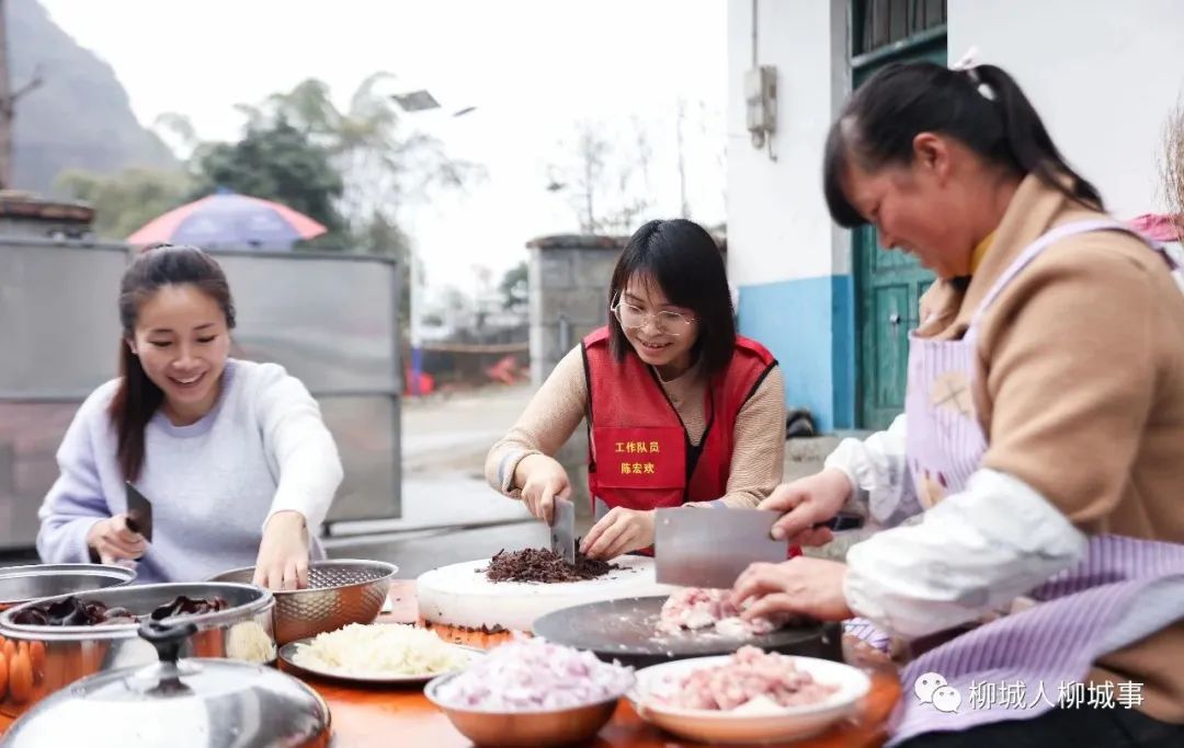 羅峒村村委會辦公樓正好在我們制作場地的旁邊,我們在制作九層糕時,時不時就來個阿哥,切切菜,做個蘸水,然后就去入戶或者到田里宣傳政策?!拔覀兙拖駛€大家庭,一起工作一起玩,就想為羅峒做些事,讓大家過得更好。”駐村半年多的陳宏歡說。
