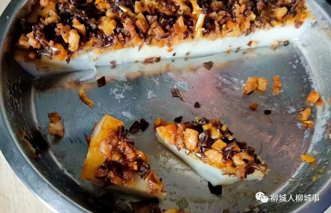 這種糕點看起來普普通通,白白的糕體,切口面可以看到一層一層的紋路,一共九層,故而得名,糕體上鋪滿餡料,一口咬下,糕體軟糯綿滑,餡料咸鮮適中,兩者相得益彰,最簡單的味道,卻讓人忍不住越吃越想吃??谖陡匾稽c的,可以沾些蘸水,在咸鮮中加入一味辣,更覺過癮!