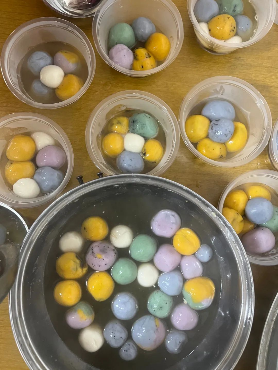 在一雙雙巧手地揉搓之下,一個個象征著團(tuán)團(tuán)圓圓、闔家幸福的湯圓便擺滿了餐盤,飽滿的彩色湯圓讓人垂涎欲滴。