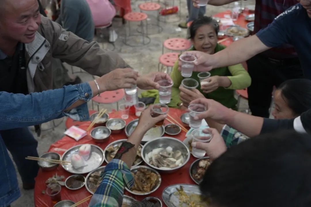 在沖江村,長漕村,洛文村老人們齊聚一堂,通過同賞文藝演出、吃敬老宴。