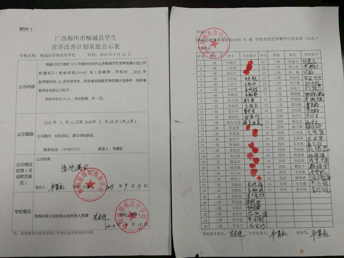 柳城縣特殊教育學(xué)校2018年秋學(xué)期學(xué)生營(yíng)養(yǎng)改善計(jì)劃資助名單