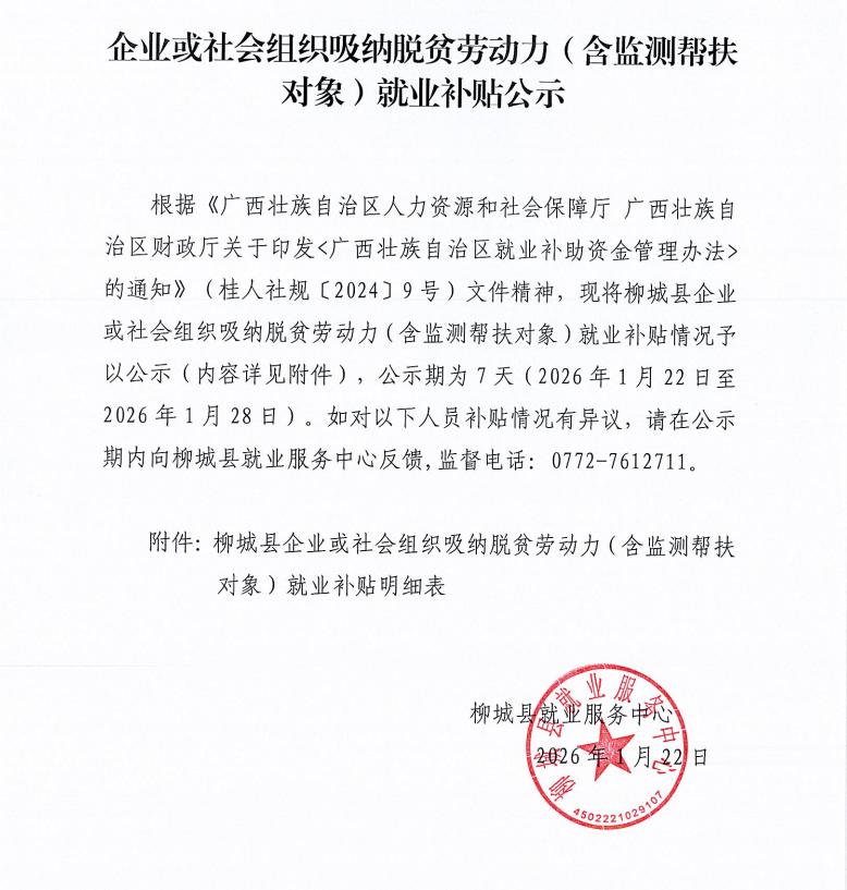 來源: 柳城縣人力資源和社會保障局 | 發(fā)布日期: 2026-01-22 16:40 | 作者: