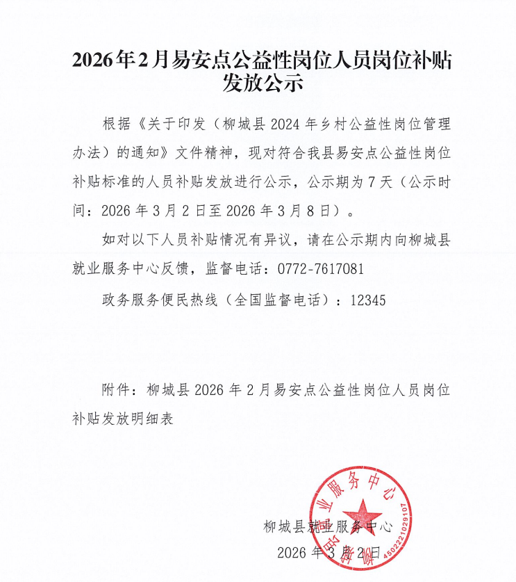 來源: 柳城縣人力資源和社會保障局 | 發(fā)布日期: 2026-03-02 16:45 | 作者: