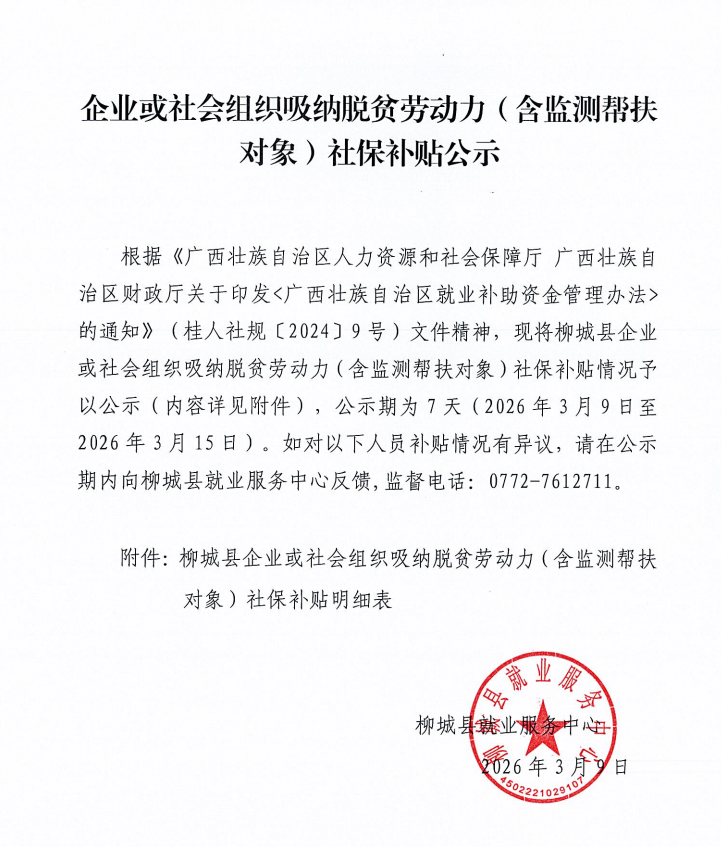 來源: 柳城縣人力資源和社會保障局 | 發(fā)布日期: 2026-03-09 11:45 | 作者: