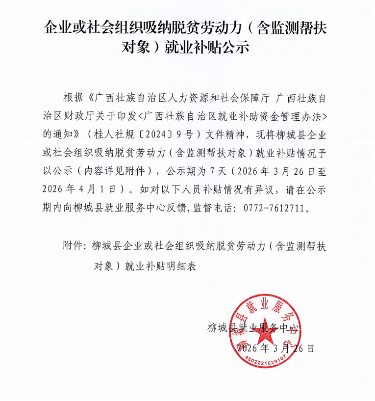 來源: 柳城縣人力資源和社會保障局 | 發(fā)布日期: 2026-03-26 11:10 | 作者: