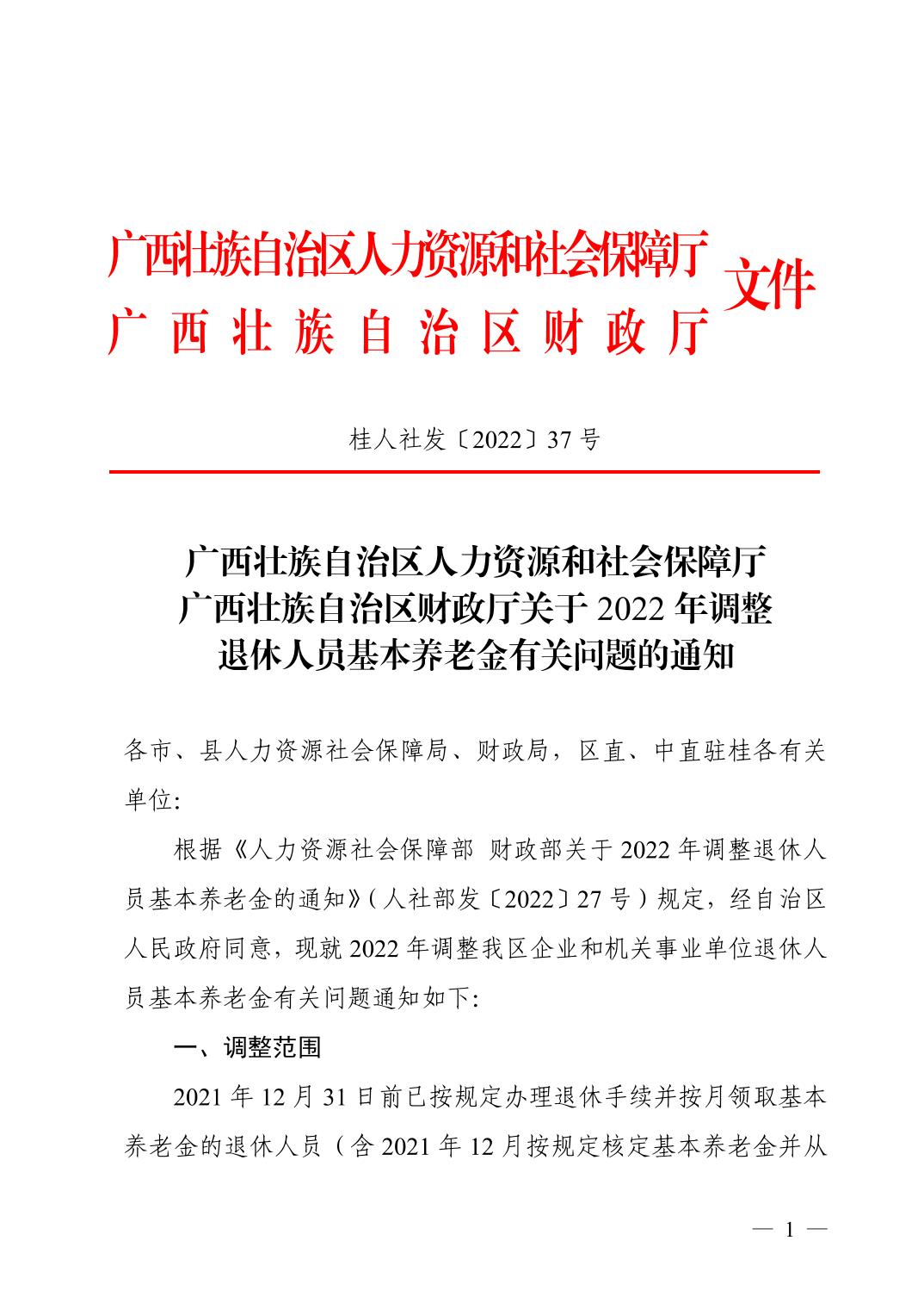 廣西壯族自治區(qū)人力資源和社會保障廳+廣西壯族自治區(qū)財政廳關(guān)于2022年調(diào)整退休人員基本養(yǎng)老金有關(guān)問題的通知