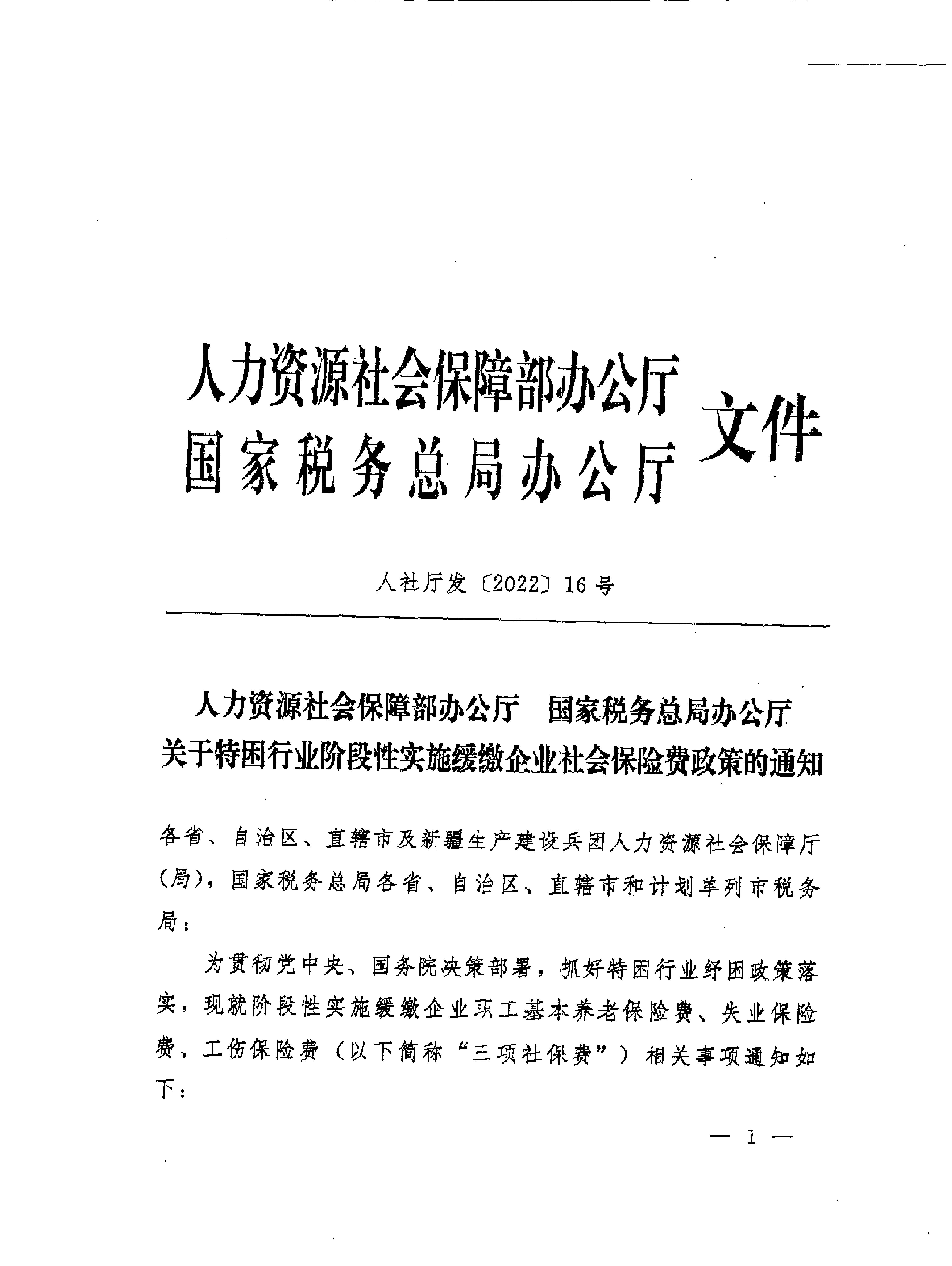 關(guān)于特困行業(yè)階段性實(shí)施緩繳企業(yè)社會(huì)保險(xiǎn)費(fèi)政策的通知
