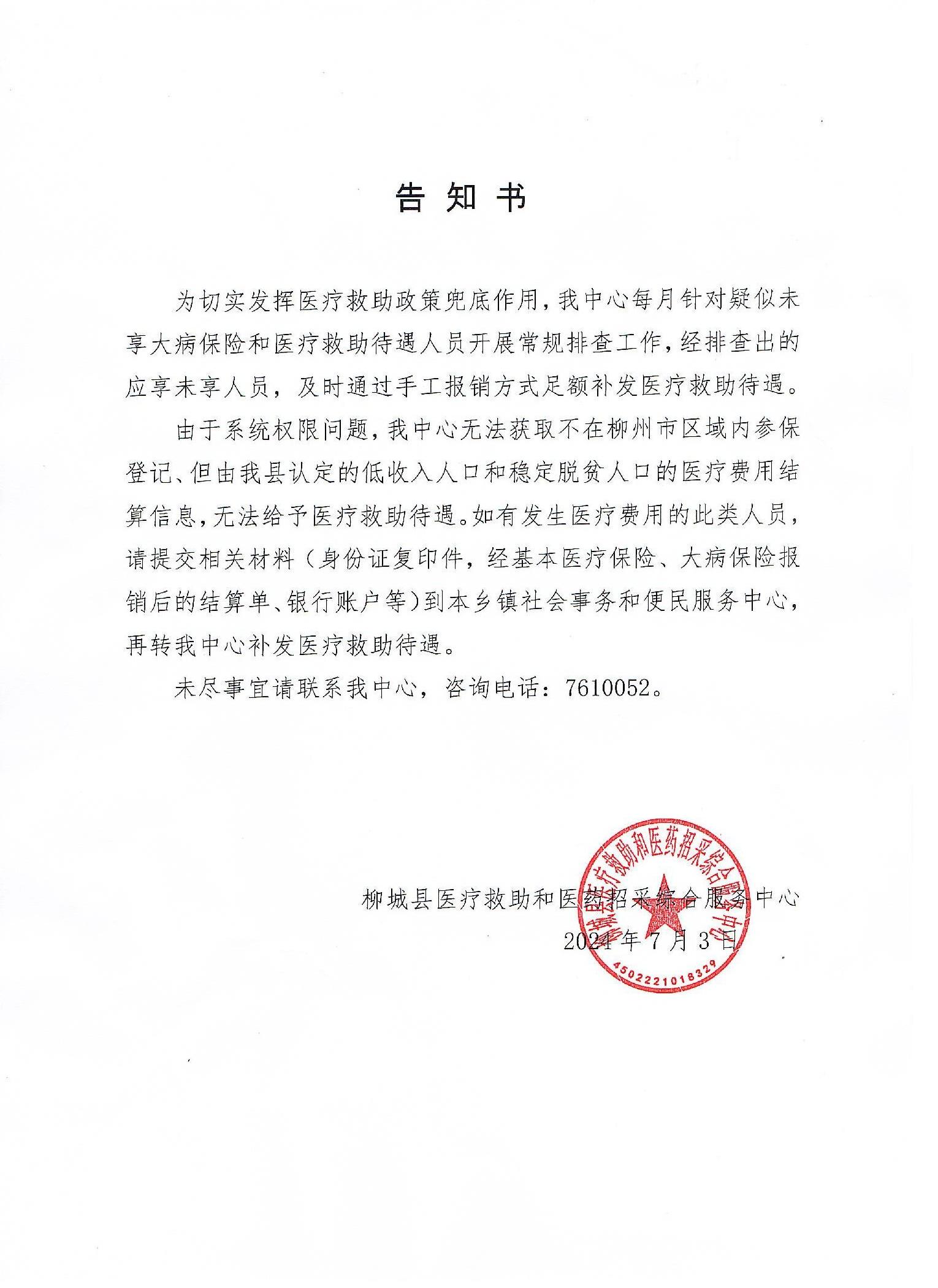柳城縣部分特殊群眾應(yīng)享未享醫(yī)療救助待遇告知書(shū)