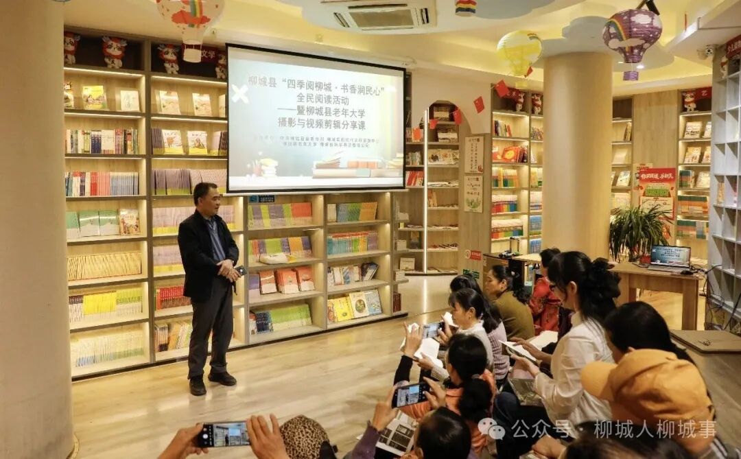揭牌當(dāng)天,新華書店內(nèi)還舉行了柳城縣“四季閱讀柳城·書香潤民心”全民閱讀活動——暨柳城縣老年大學(xué)攝影與視頻剪輯分享課。分享課緊扣群眾實際需求,將實用技能培訓(xùn)植入閱讀場景,既豐富了群眾精神文化生活,也讓“四季閱讀”基地的文化服務(wù)功能從“靜態(tài)閱覽”升級為“動態(tài)互動”,充分彰顯了其作為公共文化服務(wù)陣地的示范意義與實踐價值,為柳城全民閱讀深入開展注入新活力。