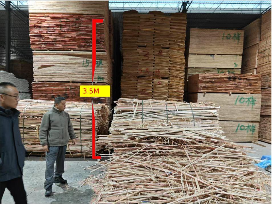 事故發(fā)生地在廣西綠源木業(yè)有限公司的出貨通道內(nèi),右邊擺放著木料板材堆垛,木料堆垛前有兩個邊料堆垛,邊料堆垛為3層,高度為3.5米。