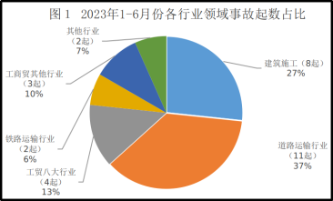 1-6月份,各重點行業(yè)中,有6個行業(yè)發(fā)生了生產(chǎn)安全事故:道路運輸行業(yè)(事故11起、死亡14人,同比分別減少25起、減少24人,分別下降69.44%和63.16%)、建筑施工行業(yè)(事故8起、死亡7人,同比分別增加8起、增加7人,分別上升800%和700%。其中建筑裝飾和裝修事故4起,管道和設(shè)備安裝事故1起,其他房屋建筑事故2起,其他建筑安裝事故1起)、工貿(mào)八大行業(yè)(事故4起、死亡2人,同比事故增加1起、上升33.33%,死亡減少1人、下降33.33%)、工商貿(mào)其他行業(yè)(事故3起、死亡2人,同比分別增加2起、增加1人,分別上升200%和100%)、鐵路運輸行業(yè)(事故2起、死亡1人,同比死亡減少1人、下降50%,事故起數(shù)持平)、其他行業(yè)(事故2起、死亡1人,同比事故減少1起、死亡減少1人,分別下降33.33%和50%)。金屬非金屬礦山、化工和煙花爆竹、水上運輸、農(nóng)業(yè)機械4個行業(yè)領(lǐng)域未發(fā)生生產(chǎn)安全事故。