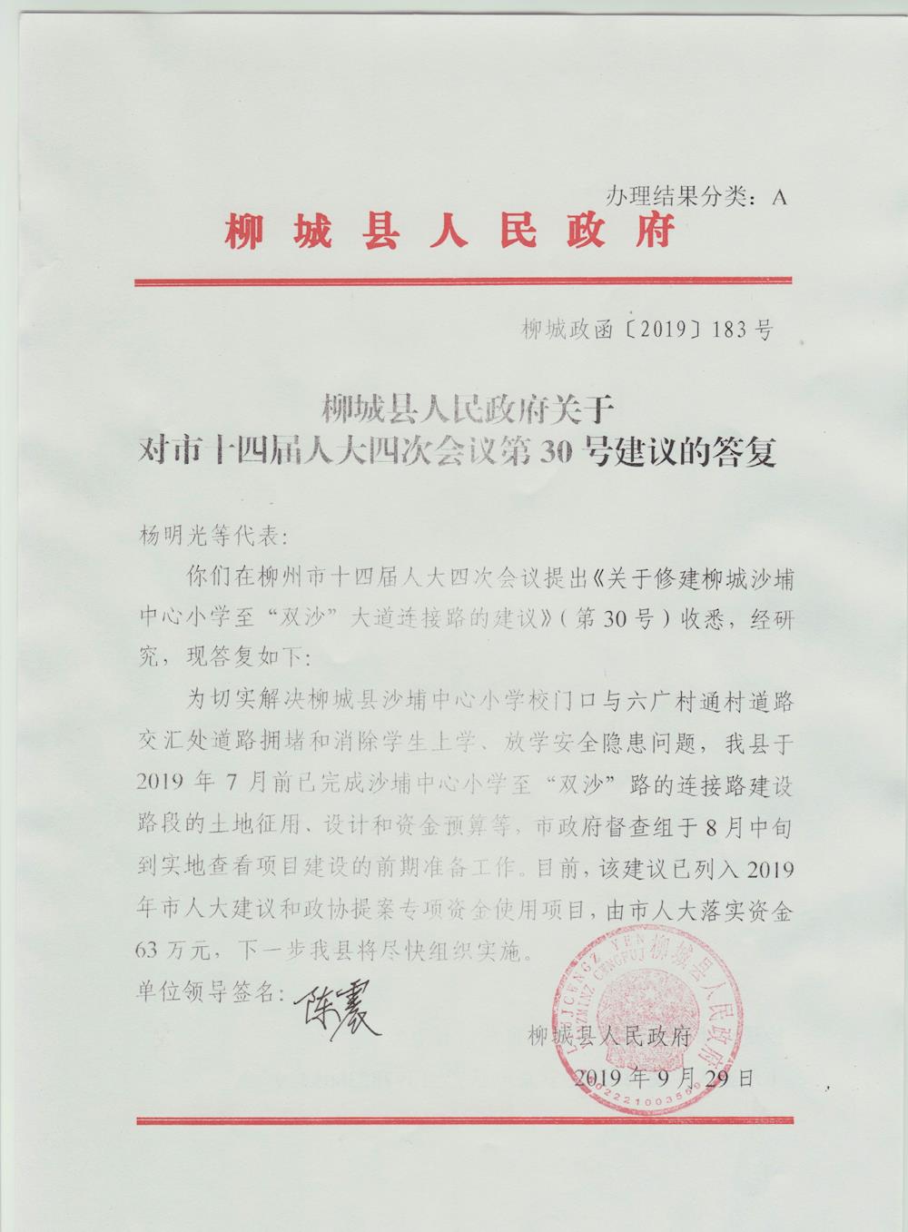 柳城縣人民政府關(guān)于對(duì)柳州市十四屆人大四次會(huì)議第30號(hào)建議的答復(fù)