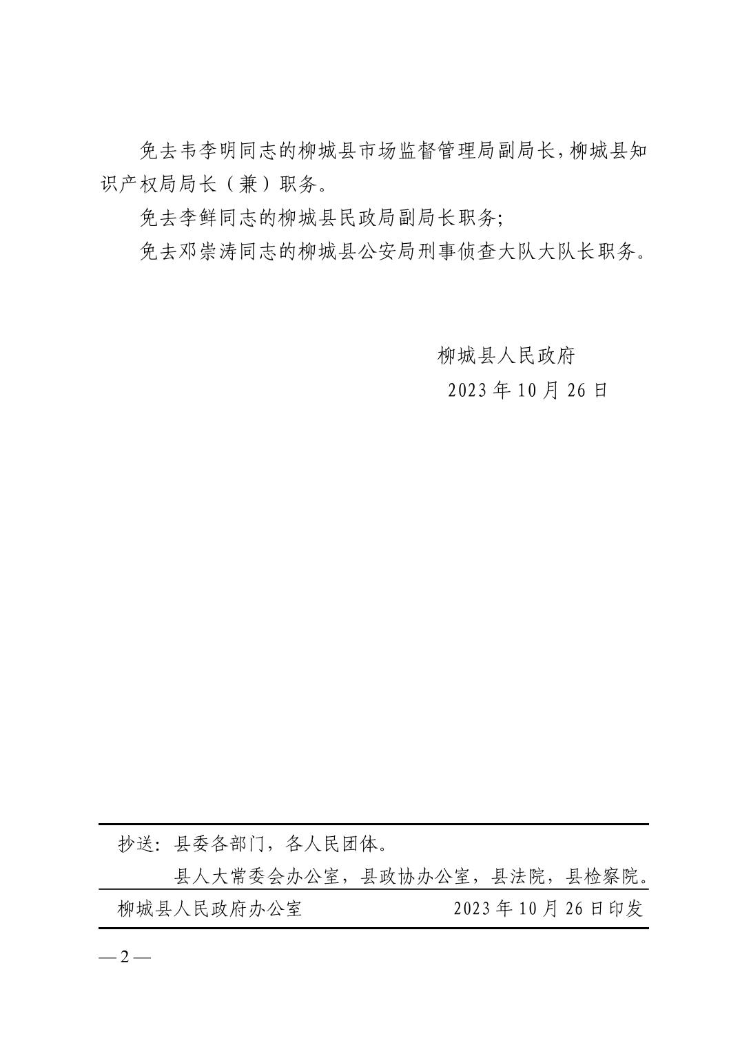 柳城政干〔2023〕8號(hào) 柳城縣人民政府關(guān)于陶承偉等同志任免職的通知