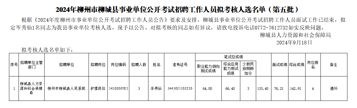 2024年柳州市事業(yè)單位公開(kāi)考試招聘工作人員擬考核人選名單 (遞補(bǔ)人員)(第五批)