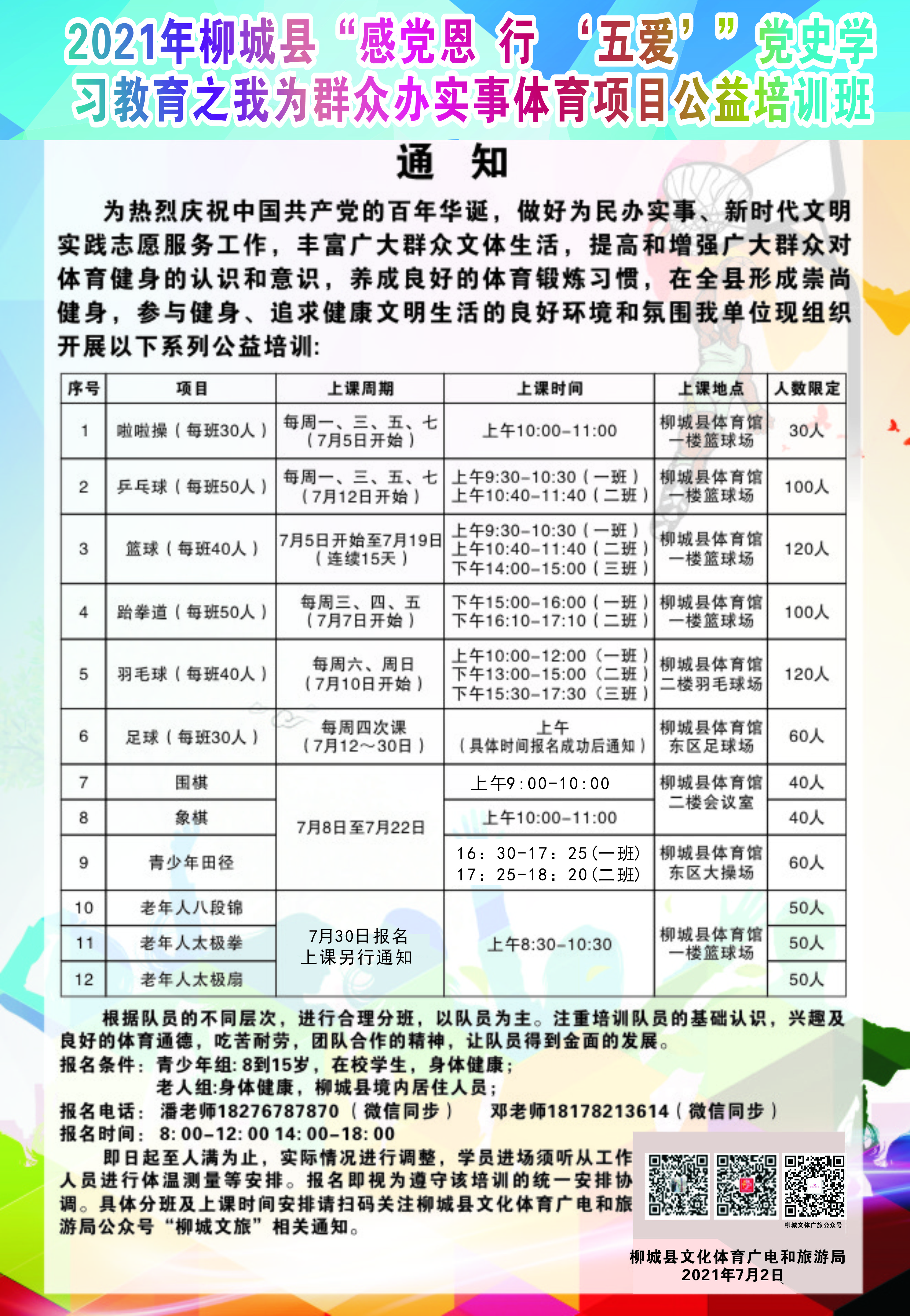 2021年柳城縣“感黨恩 行‘五愛’”黨史學(xué)習(xí)教育之我為群眾辦實(shí)事體育項(xiàng)目公益培訓(xùn)班