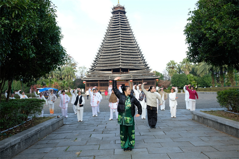 本次活動不僅助力健身氣功在邊疆少數(shù)民族地區(qū)的推廣普及,提高民族地區(qū)群眾體育文化生活水平,更吸引不少游客來到三江侗族自治縣?;顒悠陂g恰逢三江侗年系列活動開展,舉辦方特別推出了面向報名參訓學員的優(yōu)惠,眾多健身氣功愛好者們慕名組團到三江,接受專家指導之余,感受少數(shù)民族節(jié)慶風俗。傳統(tǒng)養(yǎng)生功法與侗族大歌、吊腳樓文化相融,讓“意、氣、形”的和諧之道,碰撞出“體育+文旅+康養(yǎng)”全新火花。