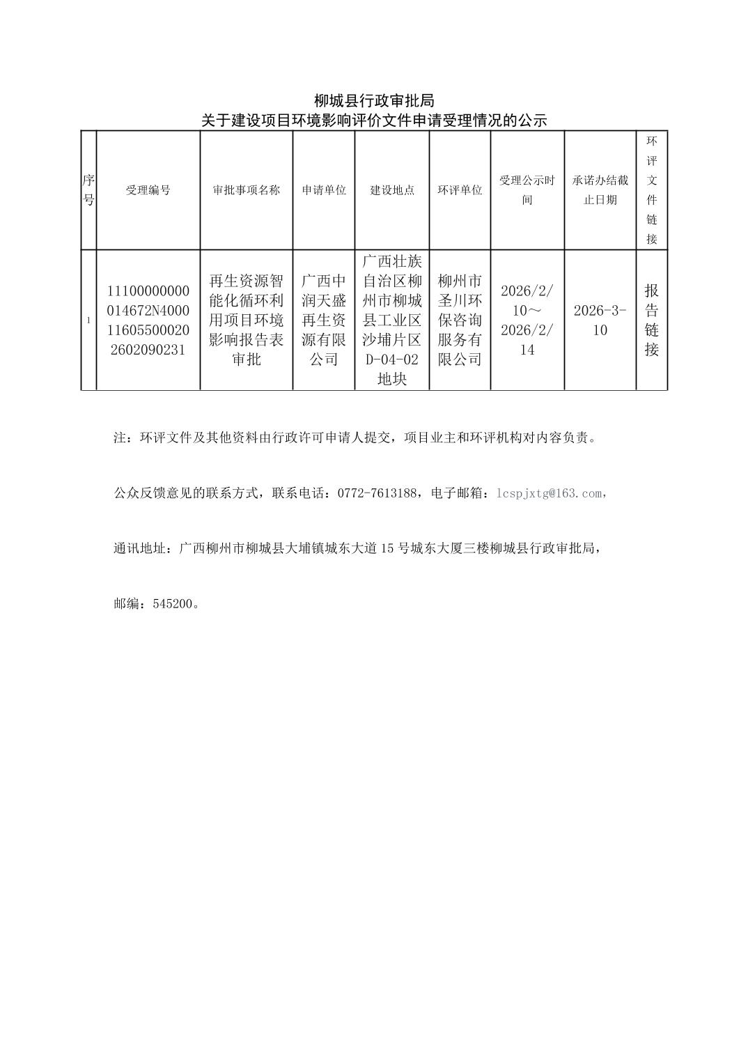 柳城縣行政審批局關于建設項目環(huán)境影響評價文件申請受理情況的公示