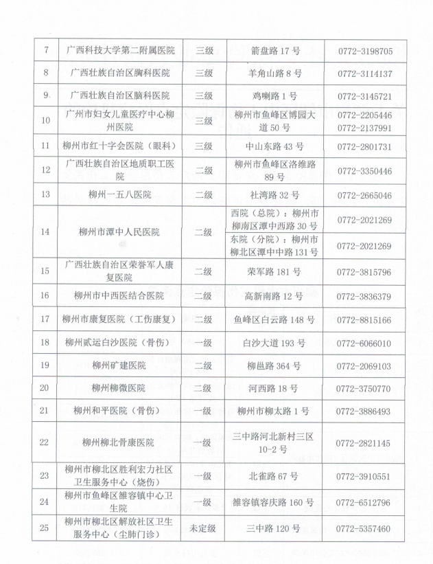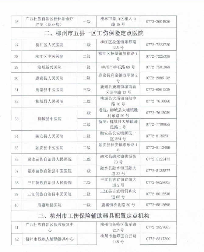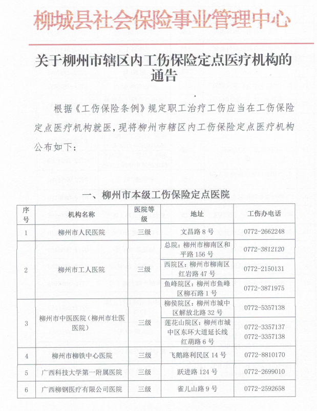 關(guān)于柳州市轄區(qū)內(nèi)工傷保險(xiǎn)定點(diǎn)醫(yī)療機(jī)構(gòu)的通告