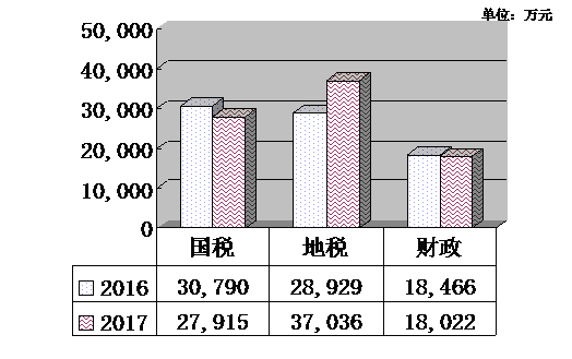 (一)攻堅克難,圓滿完成全年財政收入目標。以信息化為依托,分級分類管理,強化評估與稽查及縣綜合制稅平臺作用,2017年全縣完成財政總收入82,973萬元,為預算調(diào)整數(shù)82,700萬元的100.33%,比上年同期增加4,788萬元,增長6.12%。